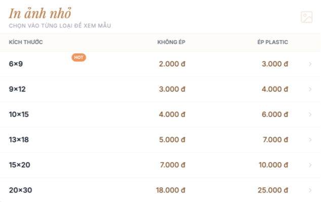 5. Bảng giá in ảnh theo yêu cầu tại Quảng Ngãi được cập nhật liên tục tại một trang riêng